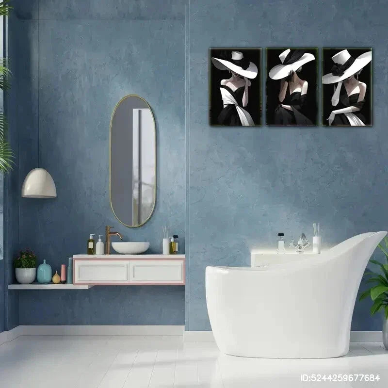 3pcs Black and White Woman with Hat Abstract Metal Print Ready to Hang Art