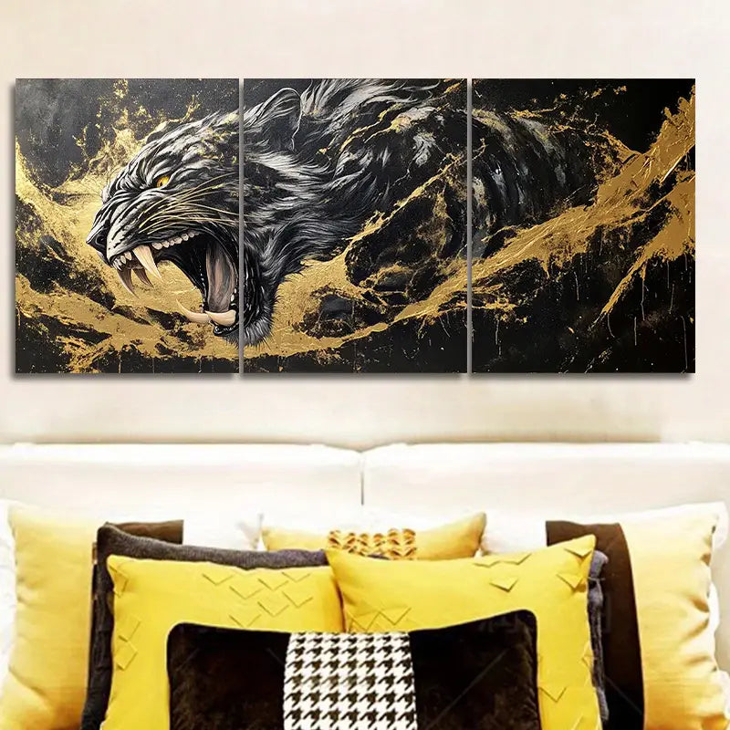 3pcs Black Animal gold marble Metal Print Ready to Hang Art