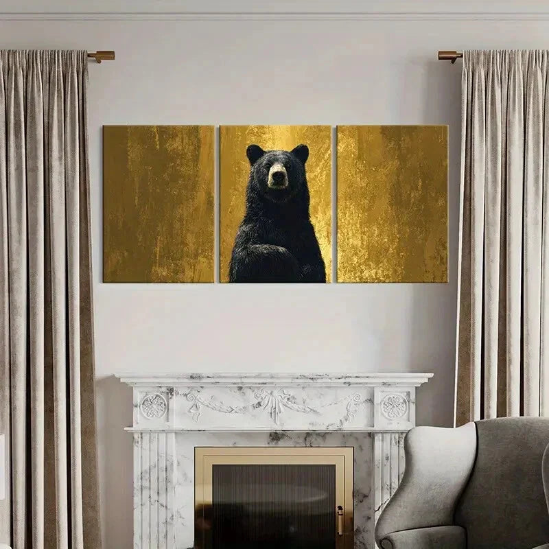 3pcs Black Bear Golden Background Forest Theme Metal Print Ready to Hang Art