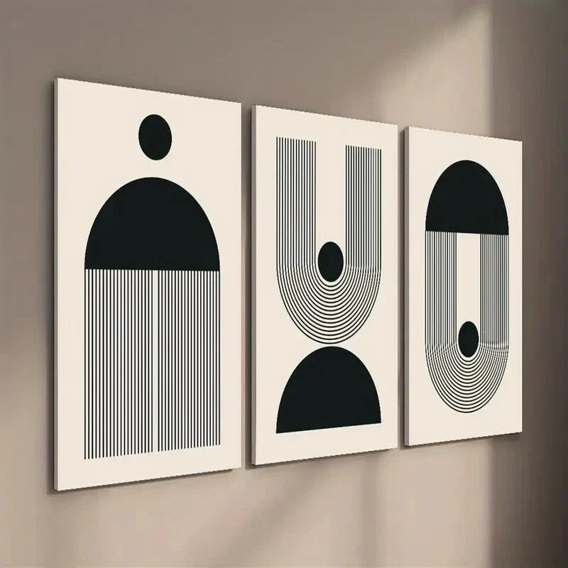 3pcs Black & Beige Abstract Geometric Wall Art Set Canvas Framed 40x60cm - High Quality Print 100% Australian Made Wall Canvas Ready to Hang