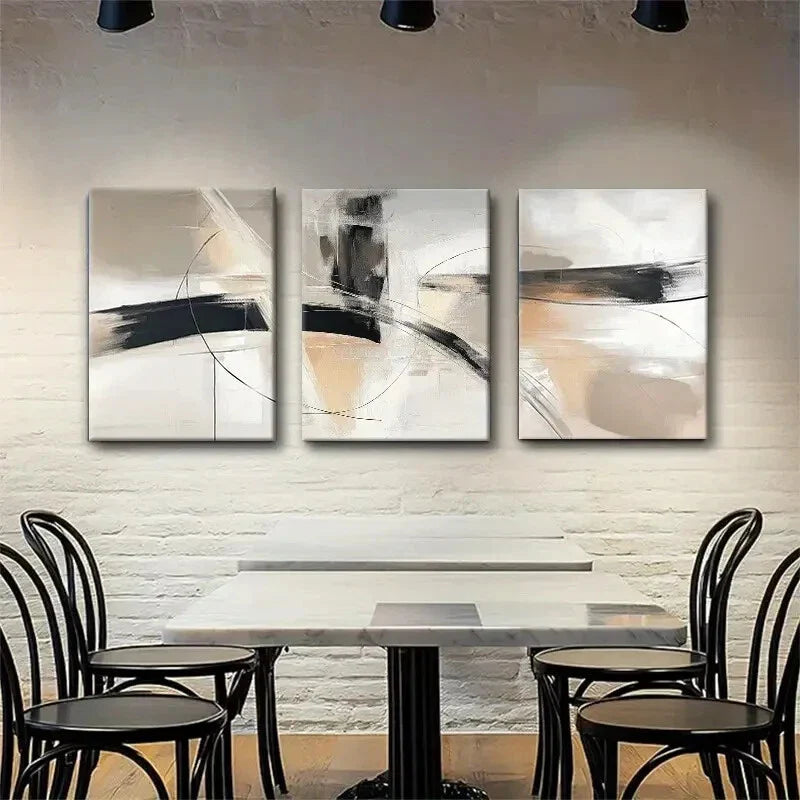3pcs Black & Beige Brushstroke Design Perfect Wall Art Set Canvas Framed 40x60cm - High Quality Print 100% Australian Made Wall Canvas Ready to Hang