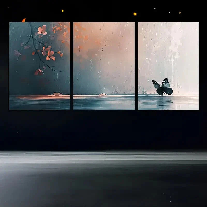 3pcs Black Butterfly Modern Red Floral Metal Print Ready to Hang Art