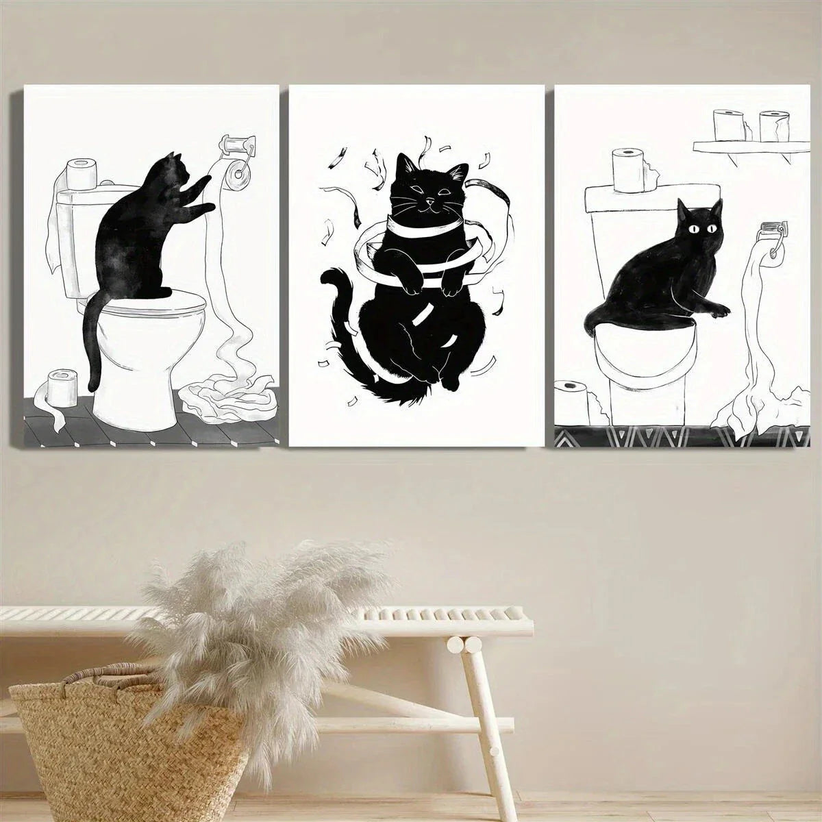 3pcs Black Cat Retro Style Black & White Metal Print Ready to Hang Art