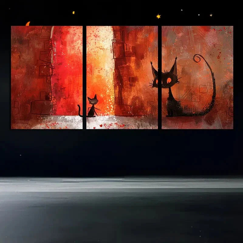3pcs Black Cat Stunning Red Eyes Metal Print Ready to Hang Art