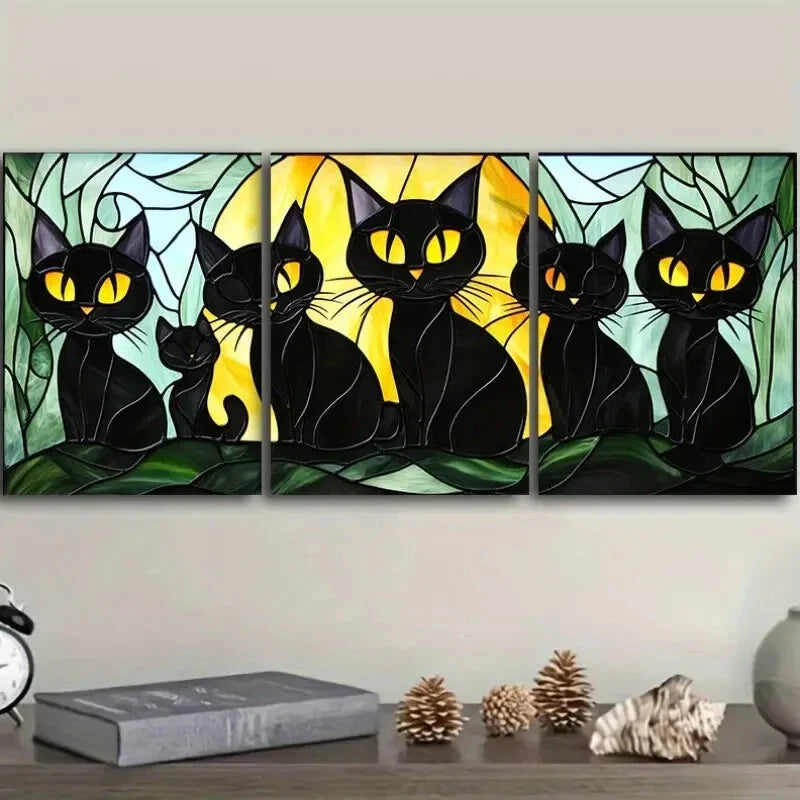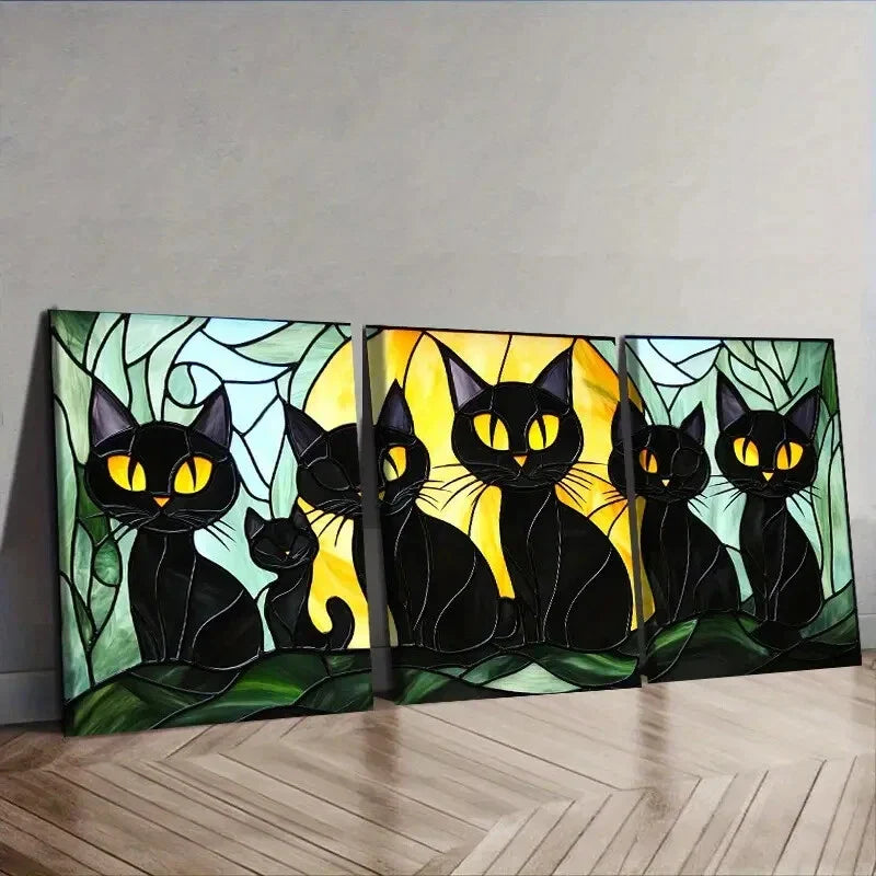3pcs Black Cats Family Wall Art Set Canvas Framed 40x60cm - High Quality Print 100% Australian Made Wall Canvas Ready to Hang