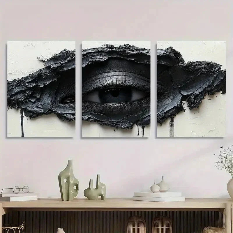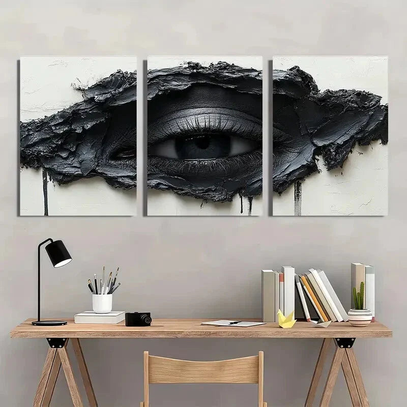 3pcs Black Eyes Abstract Black and White Metal Print Ready to Hang Art