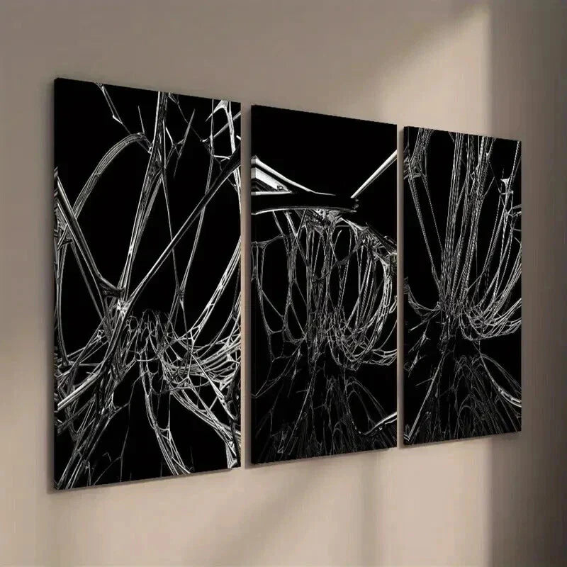 3pcs Black & White Abstract Quantum Entanglement Wall Art Set Canvas Framed 40x60cm - High Quality Print 100% Australian Made Wall Canvas Ready to Hang