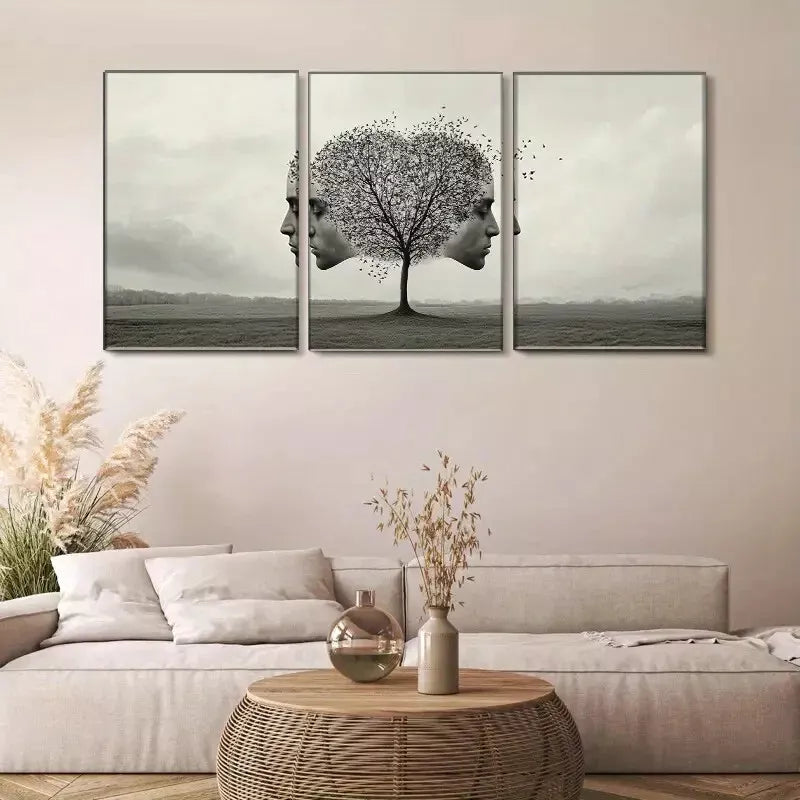 3pcs Black &White Fantasy Surreal Tree and Faces Wall Art Set Canvas Framed 40x60cm - High Quality Print 100% Australian Made Wall Canvas Ready to Hang