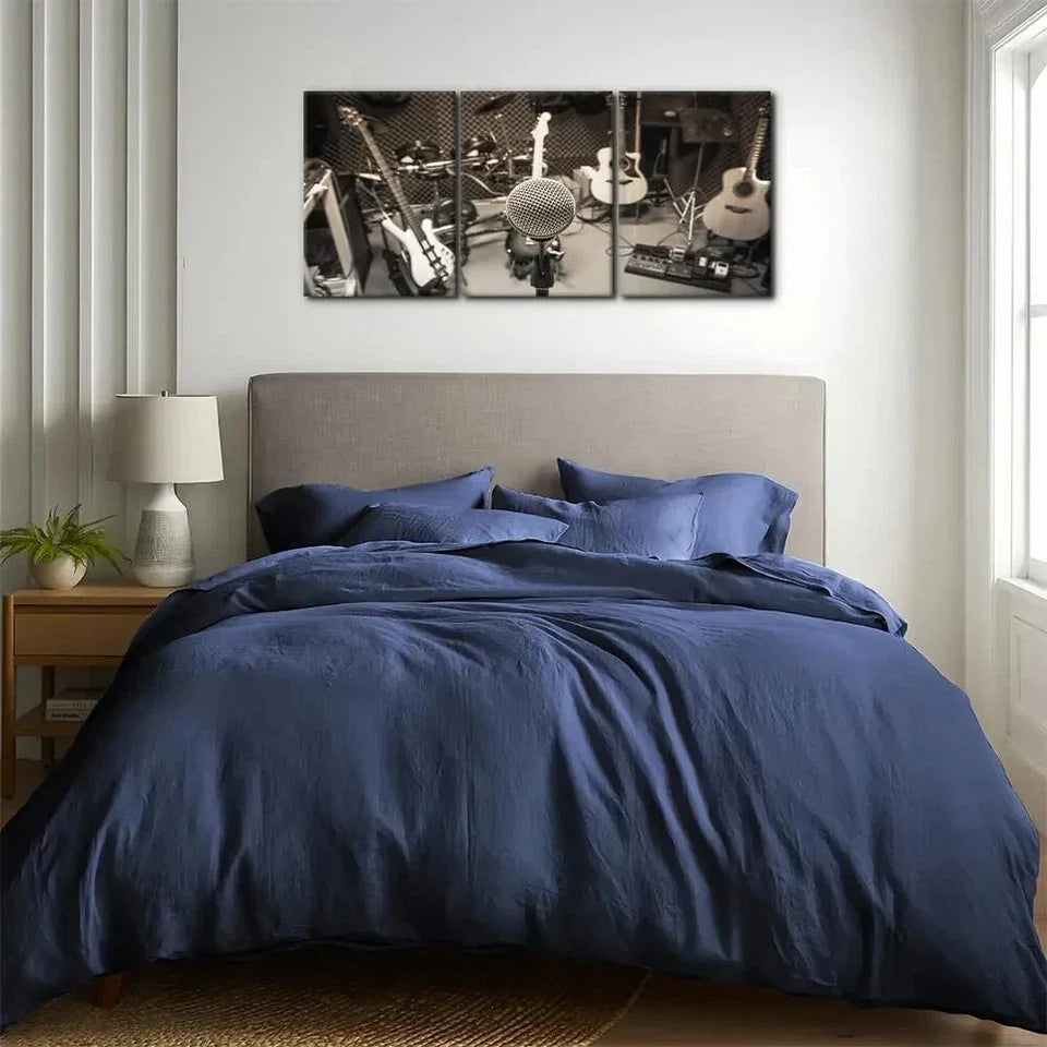 3pcs Black & White Musical Instruments Guitar Metal Print Ready to Hang Art