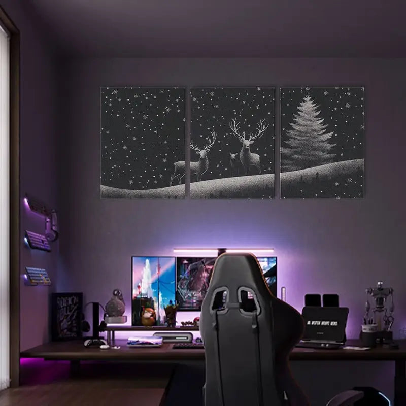 3pcs Black & White Print with Starry Night Sky, Pine Trees Metal Print Ready to Hang Art