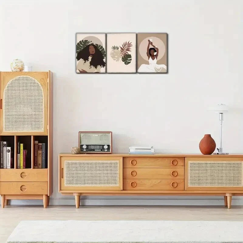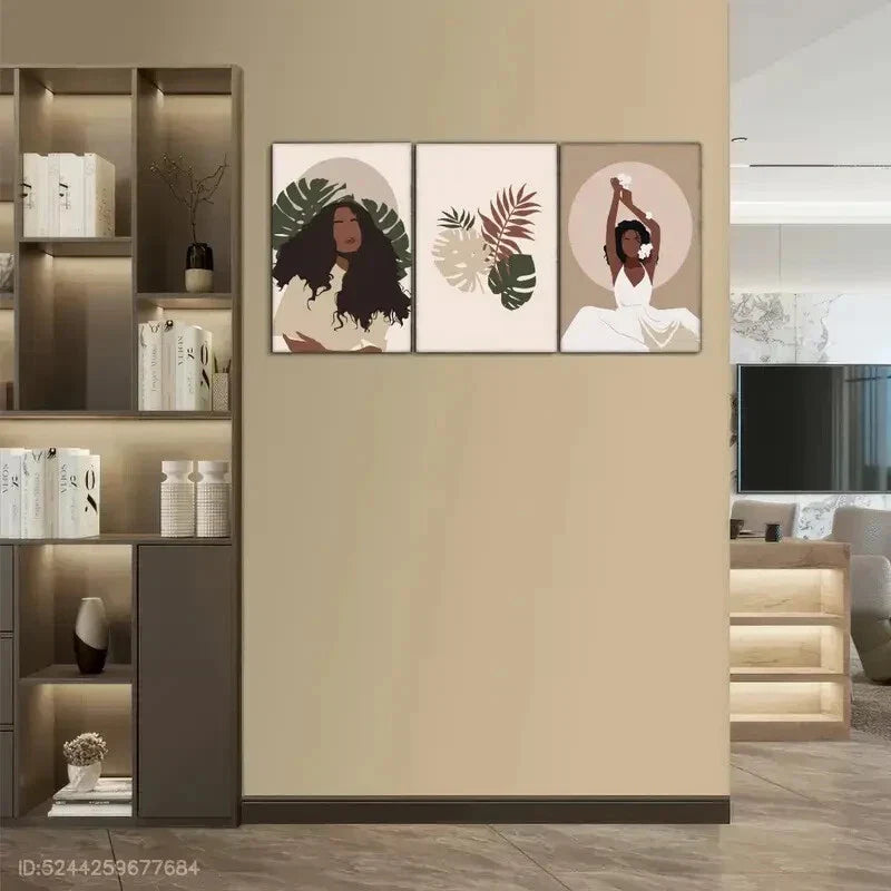 3pcs Black Woman Print African American Botanical Metal Print Ready to Hang Art