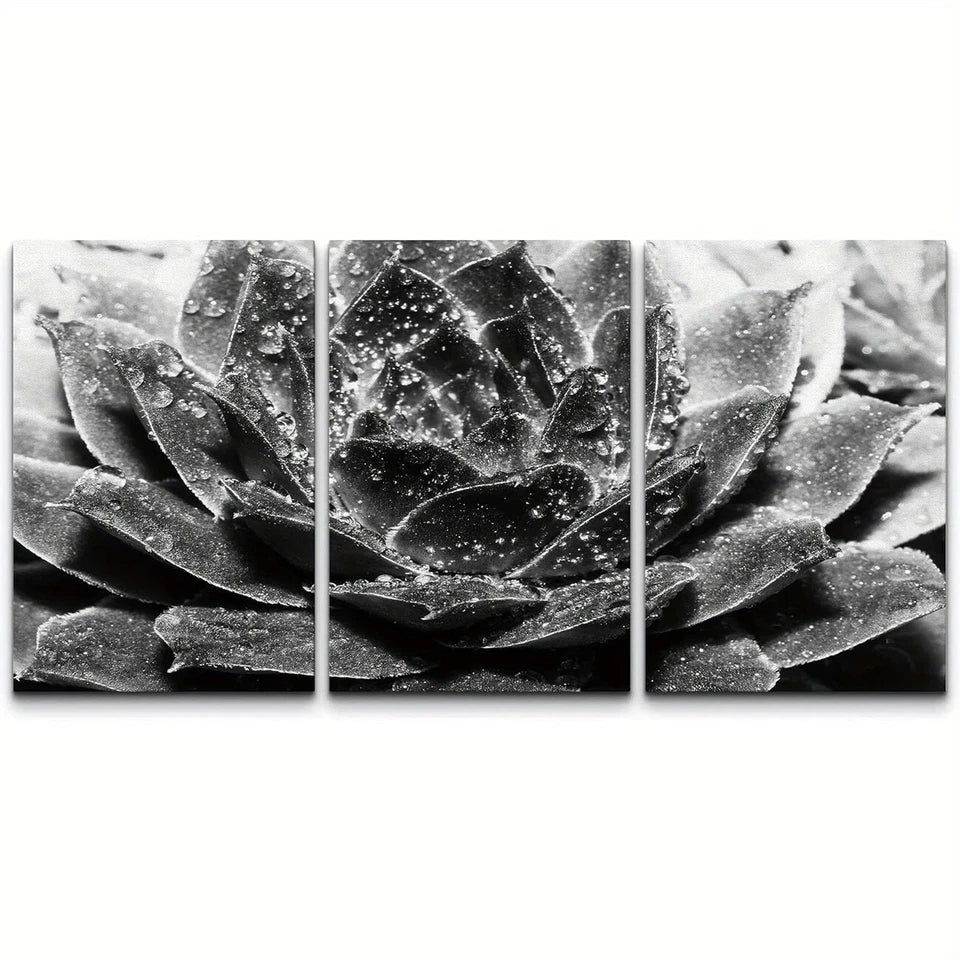 3pcs Blooming White Rose Succulent Floral Metal Print Ready to Hang Art