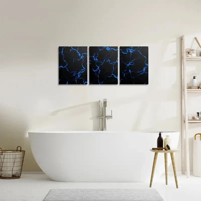 3pcs Blue And Black Strip Lines Metal Print Ready to Hang Art