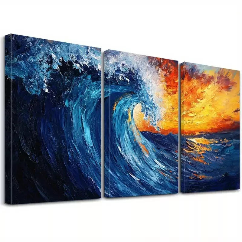 3pcs Blue And Orange Decorative Abstract Ocean Wall Art Set Canvas Framed 40x60cm - High Quality Print 100% Australian Made Wall Canvas Ready to Hang