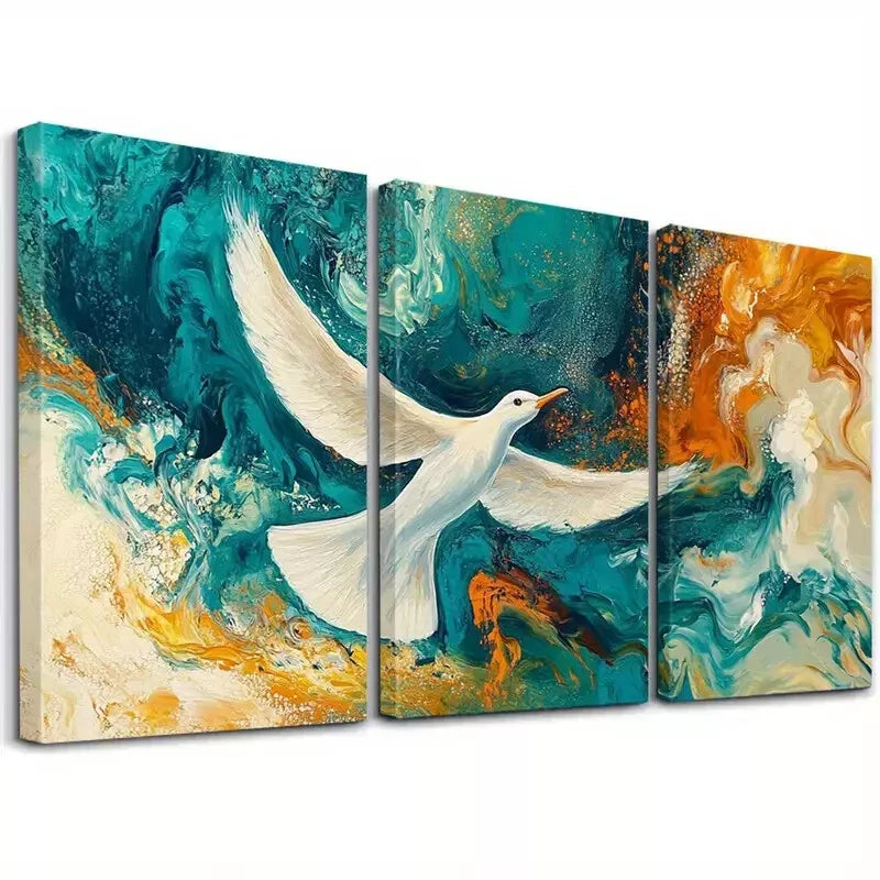 3pcs Blue And Orange Decorative Flying Bird Wall Art Set Canvas Framed 40x60cm - High Quality Print 100% Australian Made Wall Canvas Ready to Hang