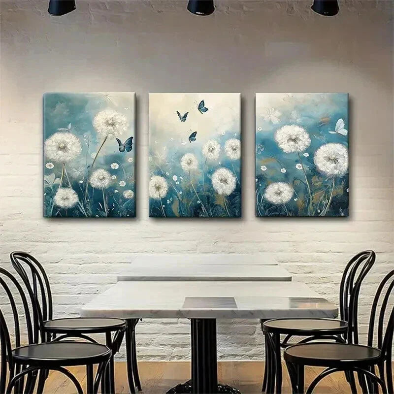 3pcs Blue and White Dandelion and Butterfly Wall Art Set Canvas Framed 40x60cm - High Quality Print 100% Australian Made Wall Canvas Ready to Hang