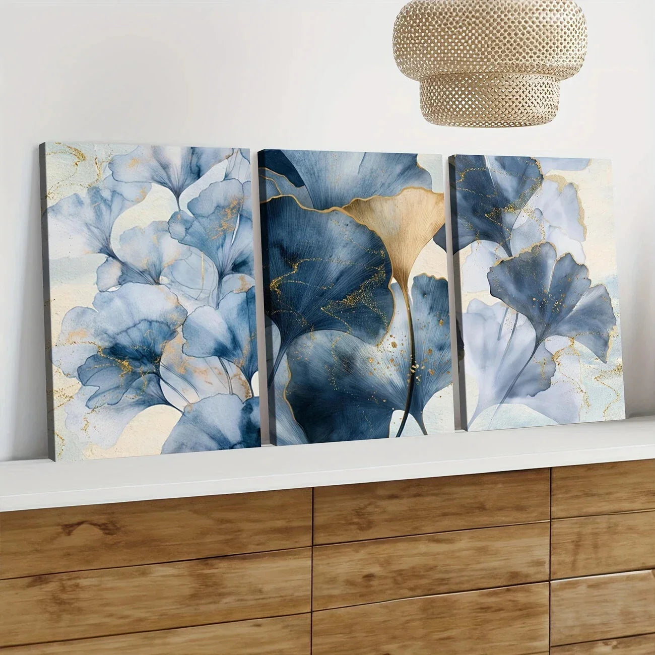 3pcs Blue Botanical Blue Leaves Abstract Wall Art Set Canvas Framed 40x60cm - High Quality Print 100% Australian Made Wall Canvas Ready to Hang