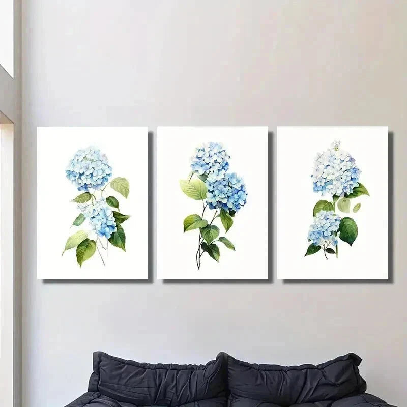 3pcs Blue Hydrangea with Green Leaves Wall Art Set Canvas Framed 40x60cm - High Quality Print 100% Australian Made Wall Canvas Ready to Hang