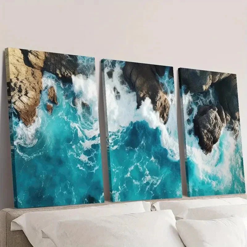 3pcs blue ocean, wave seaside scenery Wall Art Set Canvas Framed 40x60cm - High Quality Print 100% Australian Made Wall Canvas Ready to Hang