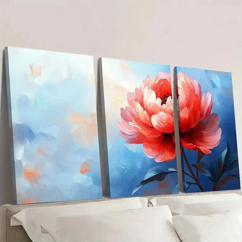 3pcs Blue & Orange Peony Floral Background Wall Art Set Canvas Framed 40x60cm - High Quality Print 100% Australian Made Wall Canvas Ready to Hang