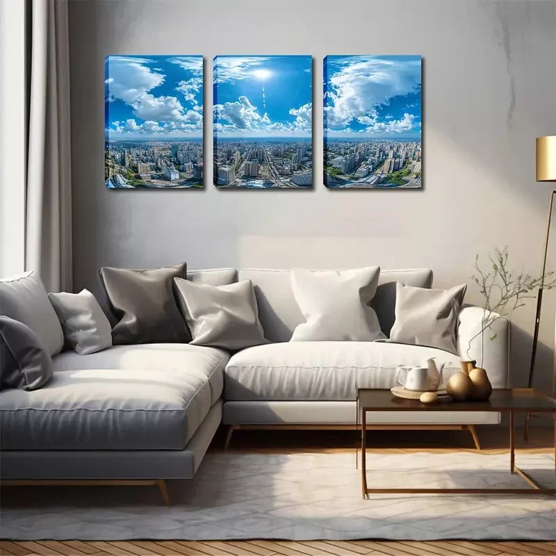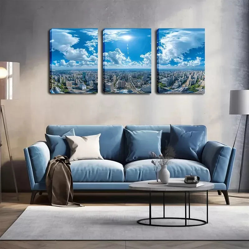 3pcs Blue Sky Above The City Wall Art Set Canvas Framed 40x60cm - High Quality Print 100% Australian Made Wall Canvas Ready to Hang