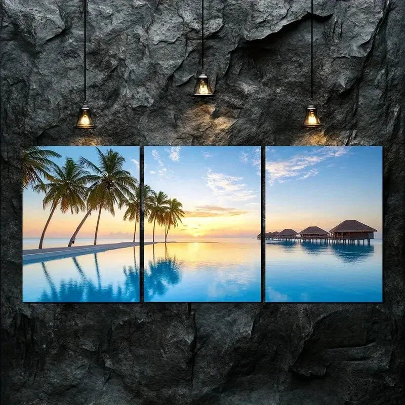 3pcs Blue Sky Island Sunset Nature Perfect Wall Art Set Canvas Framed 40x60cm - High Quality Print 100% Australian Made Wall Canvas Ready to Hang
