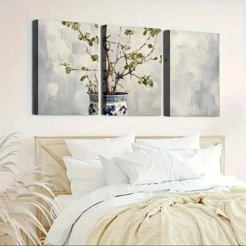 3pcs Blue & White Porcelain Vase with Branches Wall Art Set Canvas Framed 40x60cm - High Quality Print 100% Australian Made Wall Canvas Ready to Hang