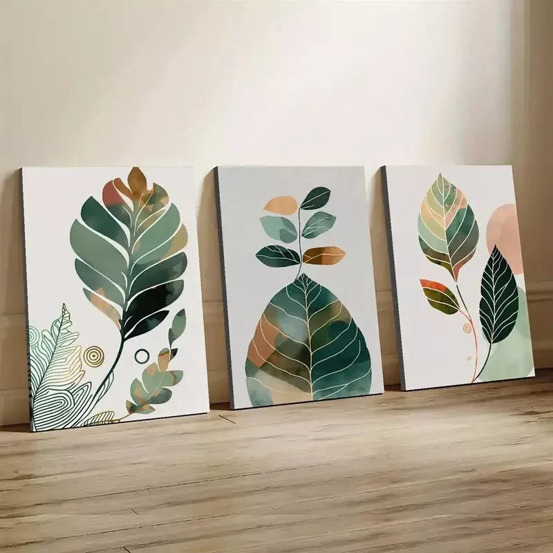 3pcs Bohemian Mid-Century Modern Style Wall Art Set Canvas Framed 40x60cm - High Quality Print 100% Australian Made Wall Canvas Ready to Hang