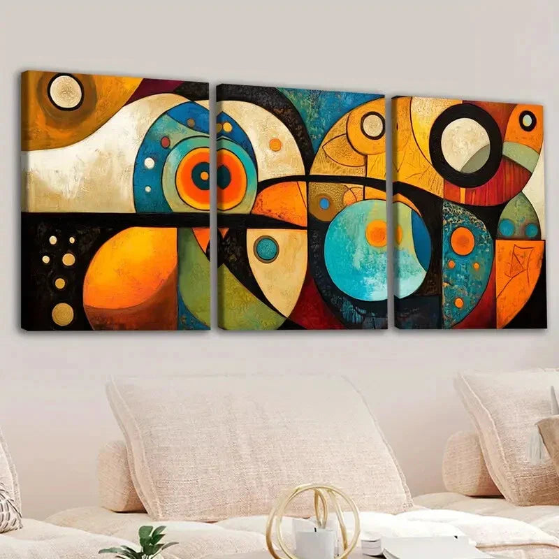3pcs Bohemian Style Cool Golden Blue Red Orange Wall Art Set Canvas Framed 40x60cm - High Quality Print 100% Australian Made Wall Canvas Ready to Hang
