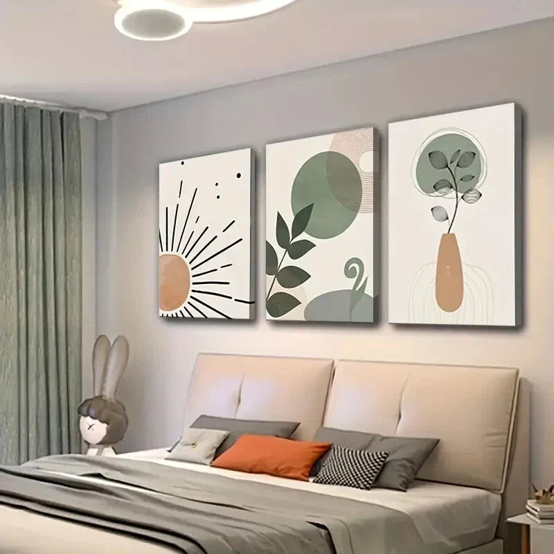 3pcs Bohemian Style with Green Tones Wall Art Set Canvas Framed 40x60cm - High Quality Print 100% Australian Made Wall Canvas Ready to Hang
