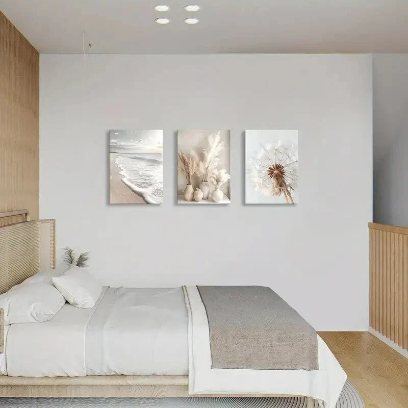 3pcs Boho Abstract Beach Beige Botanical Dandelion Metal Print Ready to Hang Art