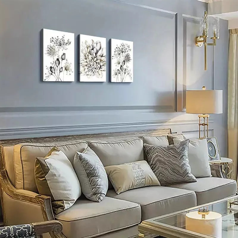 3pcs Boho Chic Dandelion & Dahlia Flower Canvas Framed 40x60cm - High Quality Print 100% Australian Made Wall Canvas Ready to Hang