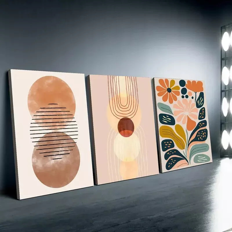 3pcs Boho Chic Wall Art Set, Abstract Line Drawing & Floral Canvas Framed 40x60cm - High Quality Print 100% Australian Made Wall Canvas Ready to Hang