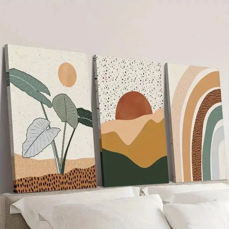 3pcs Boho Style Sunset Pastoral Tropical Plants Wall Art Set Canvas Framed 40x60cm - High Quality Print 100% Australian Made Wall Canvas Ready to Hang