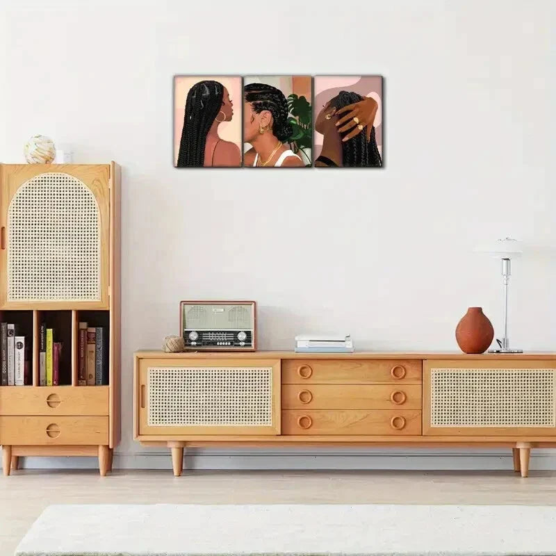 3pcs Boho Tropical Plant Leaves Print Black Girl Metal Print Ready to Hang Art