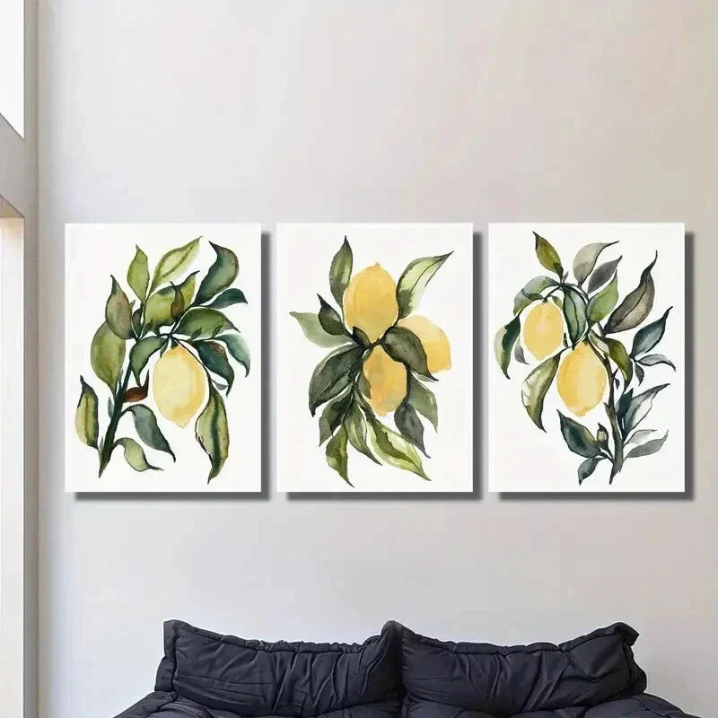 3pcs Botanical Fruit with Green Leaf Wall Art Set Canvas Framed 40x60cm - High Quality Print 100% Australian Made Wall Canvas Ready to Hang