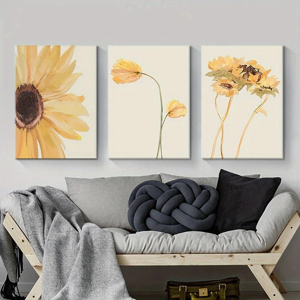 3pcs Bright Yellow Flowers Oil Painting Metal Print Ready to Hang Art