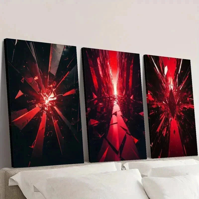 3pcs Broken Red Crystal Fragments Splash Wall Art Set Canvas Framed 40x60cm - High Quality Print 100% Australian Made Wall Canvas Ready to Hang