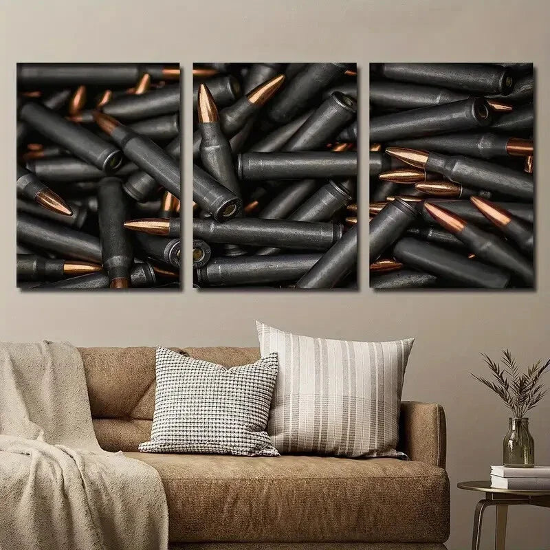 3pcs Bullet Photography Military Black Metal Print Ready to Hang Art