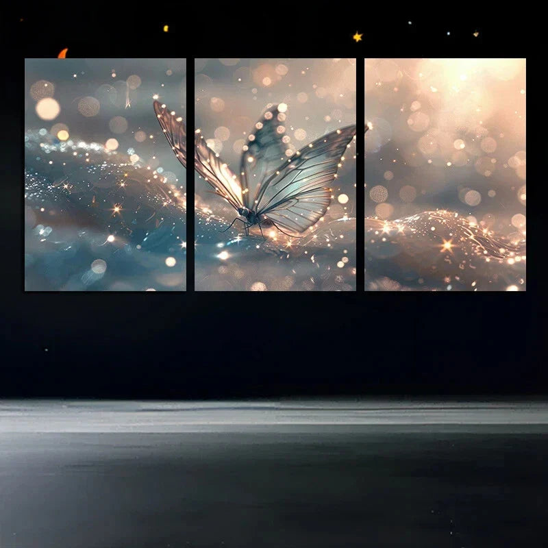 3pcs Butterflies Stunning Gold Bubbles Metal Print Ready to Hang Art