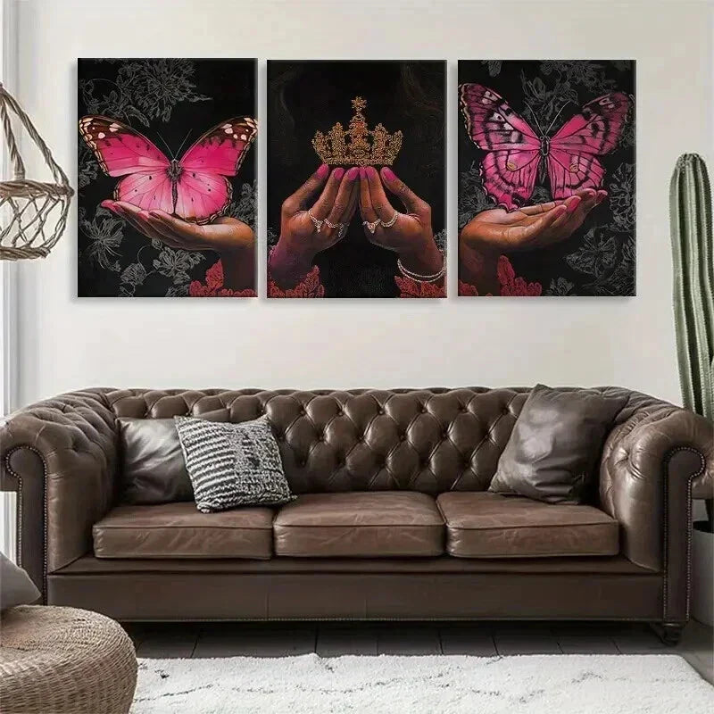 3pcs Butterfly and Crown Hands Holding Perfect Wall Art Set Canvas Framed 40x60cm - High Quality Print 100% Australian Made Wall Canvas Ready to Hang