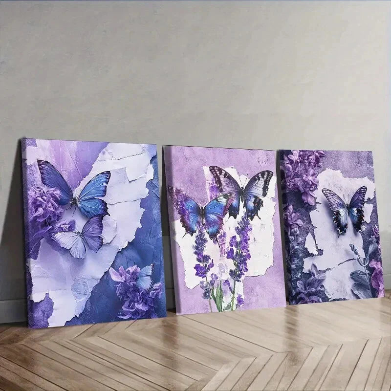 3pcs Butterfly and Floral Canvas Wall Art Set Canvas Framed 40x60cm - High Quality Print 100% Australian Made Wall Canvas Ready to Hang