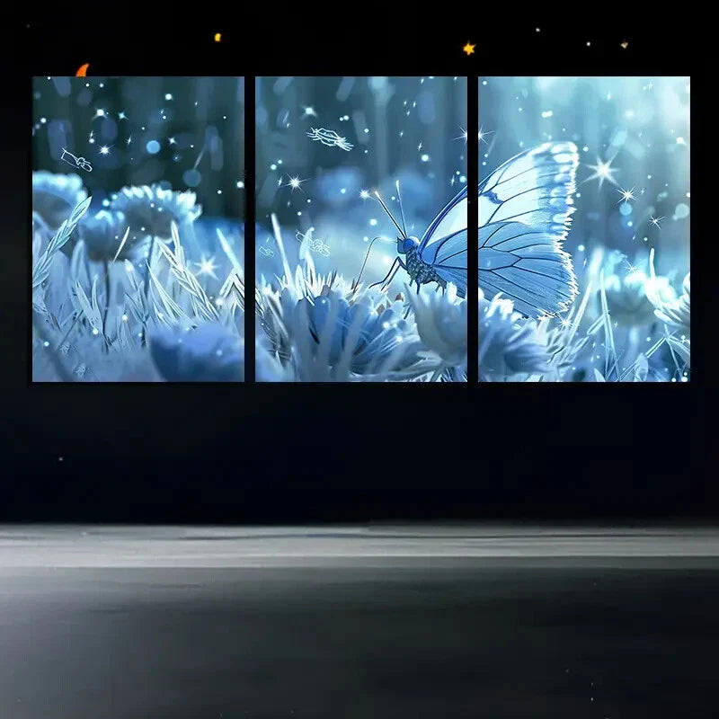 3pcs Butterfly Blue & White Wings Metal Print Ready to Hang Art