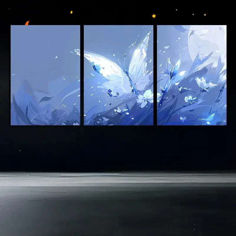 3pcs Butterfly Moon Blue Theme Metal Print Ready to Hang Art
