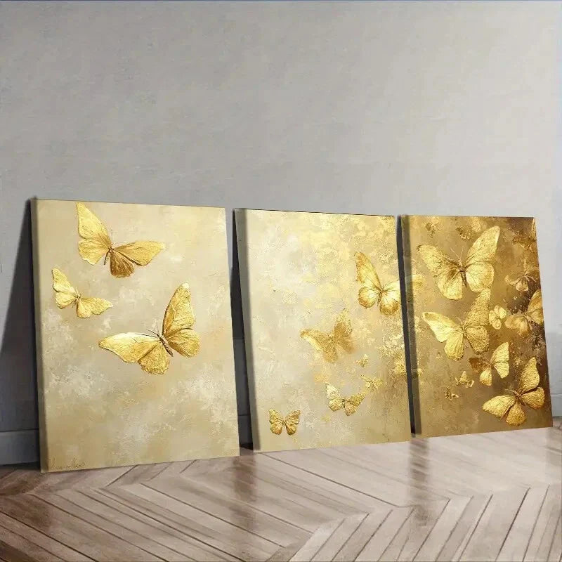 3pcs Butterfly oil painting in gold leaf Wall Art Set Canvas Framed 40x60cm - High Quality Print 100% Australian Made Wall Canvas Ready to Hang