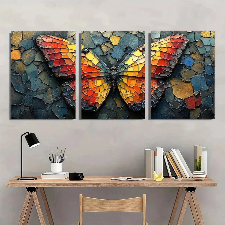 3pcs Butterfly Painting Mosaic Metal Print Ready to Hang Art