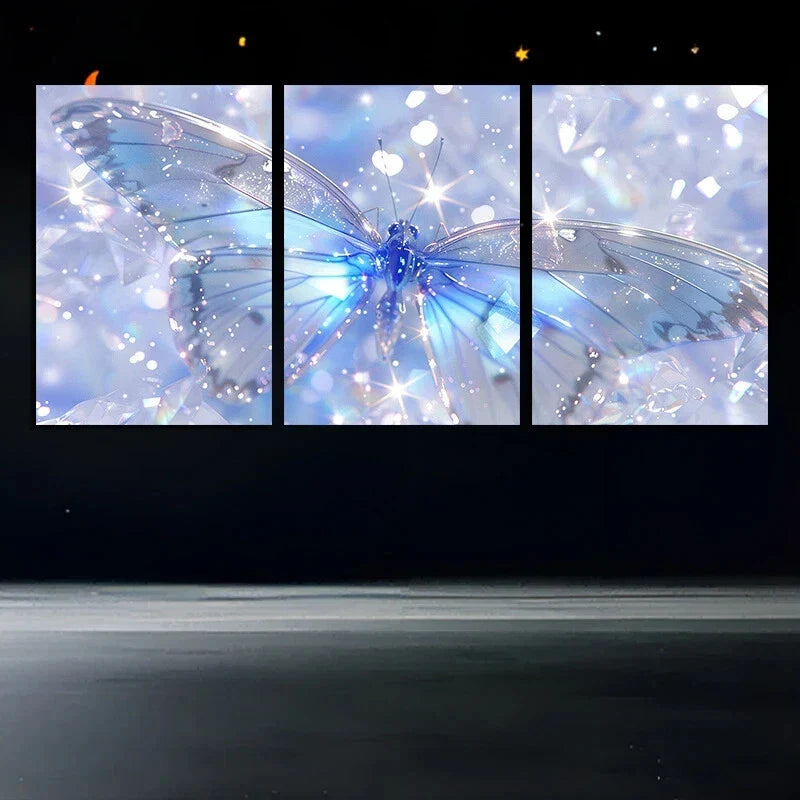 3pcs Butterfly Stunning White & Blue Metal Print Ready to Hang Art