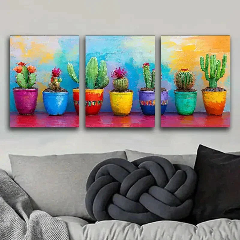 3pcs Cactus in colorful flower POTS Metal Print Ready to Hang Art