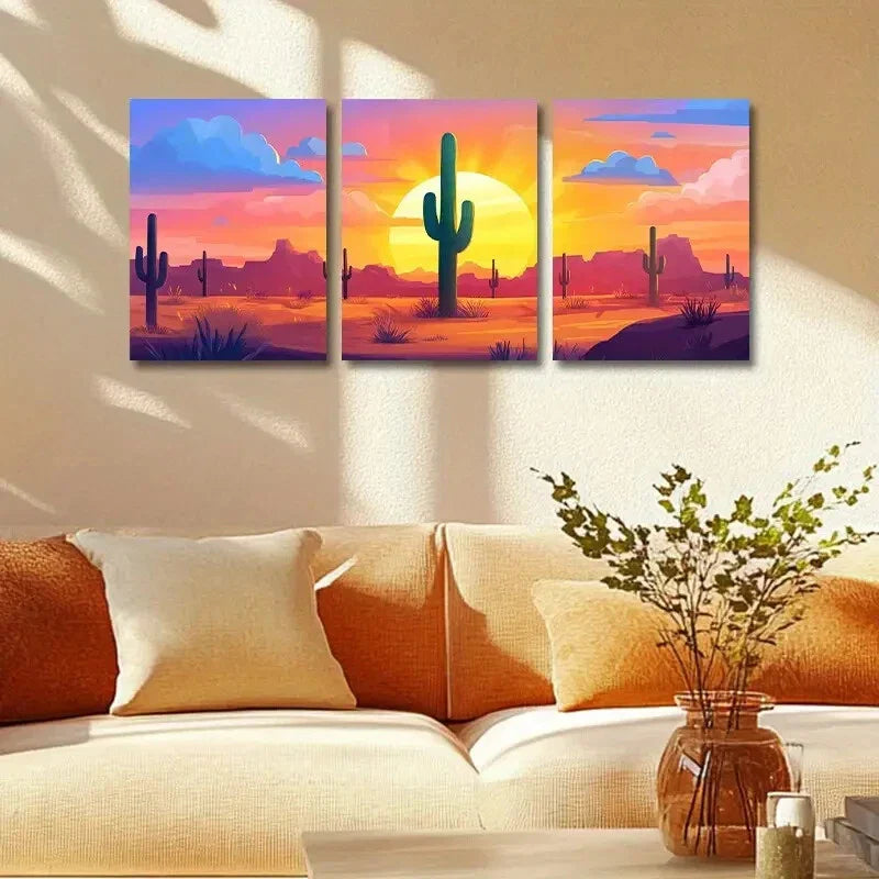 3pcs Cactus in the Desert Design Metal Print Ready to Hang Art