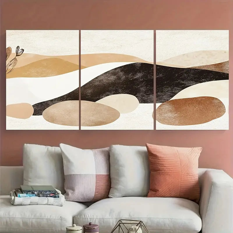 3pcs Calm Canyon Boho Rocks and Plants Metal Print Ready to Hang Art